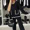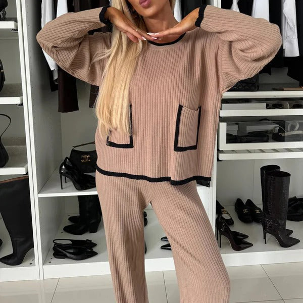 Dame loungewear-sæt – Ribbet strik – Afslappet pasform – Kontrastkant – Gennemgående