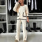 Opdag det ribbede afslapningssæt med kontrastfinish, dit nye must-have til elegant komfort. Dette ribbede striksæt til kvinder med en afslappet pasform og fuld længde er perfekt til afslapning med stil.