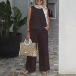 Damesæt med tanktop og bukser – løs pasform – hør og bomuld – vide ben