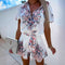 - Design: Printet top med V-hals, pufærmer, højtaljede shorts med bælte