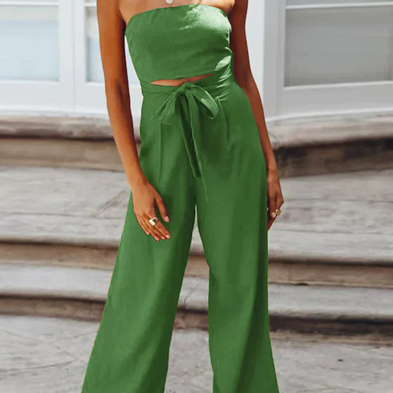 Damejumpsuit – Høj talje – Flæseærmer – Lige snit – Firkantet halsudskæring