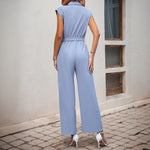 Ærmeløs damejumpsuit – Lige snit – Bælte i taljen – Skjortekrave