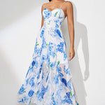 Blomsterprintet aftenkjole med slids