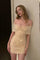 Kort, tætsiddende aftenkjole med bare skuldre og pailletter