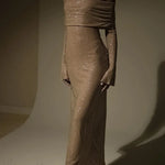 Lang pailletteret aftenkjole med et tætsiddende snit og lav halsudskæring