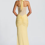 Maxi strikket aftenkjole med bindebånd