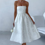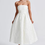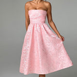Stropløs trapez-aftenkjole i ensfarvet jacquard