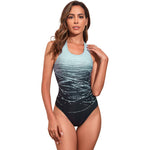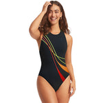 Dame badedragt - Høj halsudskæring - Livlige bølgede mønstre - Elegant silhuet