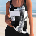 Dame Tankini – Afslappet pasform – Geometrisk print – Dobbelte stropper – Åndbart stof