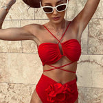 Bikini med halterneck og blomsterdetalje - Elegant og behagelig