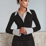 Tofarvet poloshirt med lange ærmer og todelt effekt