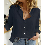 Skjorten har en afslappet pasform, der klæder alle kropstyper, mens dens V-hals og klassiske krave tilføjer et strejf af sofistikering. Knaplukningen foran giver dig mulighed for at bruge den knappet op for et mere poleret look eller åben for en mere afslappet stemning. De opsmøgede ærmedetaljer tilføjer et stilfuldt touch og tilbyder alsidighed i din garderobe.