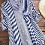 Damebluse – Afslappet pasform – Stribet – Høj hals – 3/4 ærmer – Åndbart stof