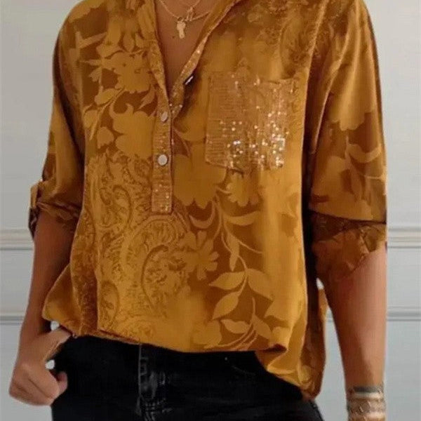 Dametunikabluse – Løs pasform – Blomsterprint – Luksuriøst stof – Knaplukning