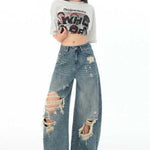 Retro falmede jeans med lange, lige ben