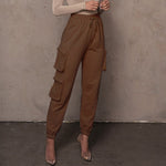 Damebukser - Stretchstrik - Høj talje - Afslappet pasform - Cargolommer