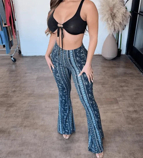 Damebukser med svaj – høj talje – bohememønster – tætsiddende og behagelig snit