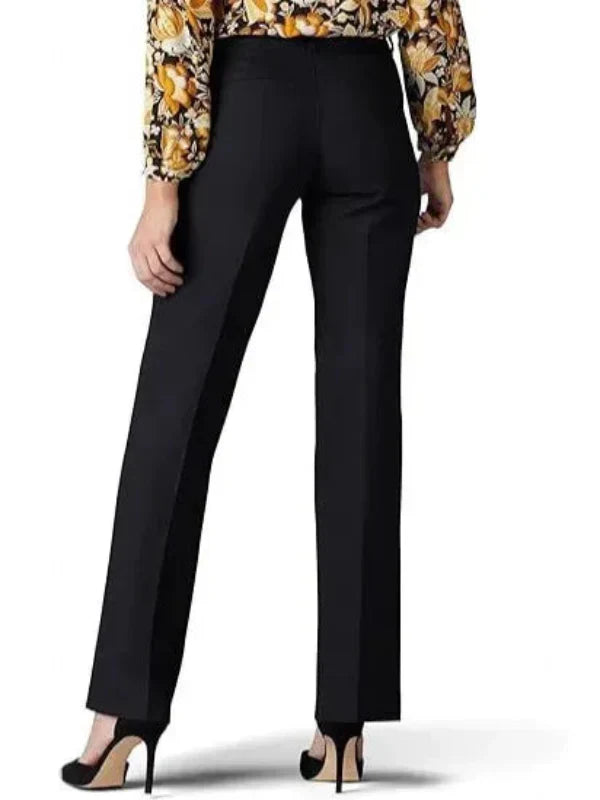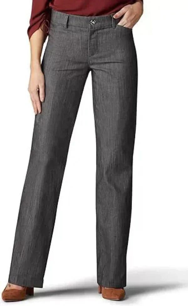 Damebukser med svaj – Høj talje – Slim fit – Strækbar bomuld – Ankellang