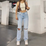 Damejeans – Høj talje – Afslappet pasform – Rippede knæ – Åndbart stof