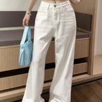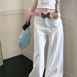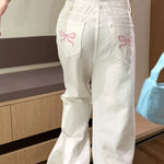 Lyserøde jeans med brede ben og broderet sløjfe