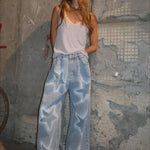 Jeans med stjerneprint, løs og lige pasform, justerbar talje
