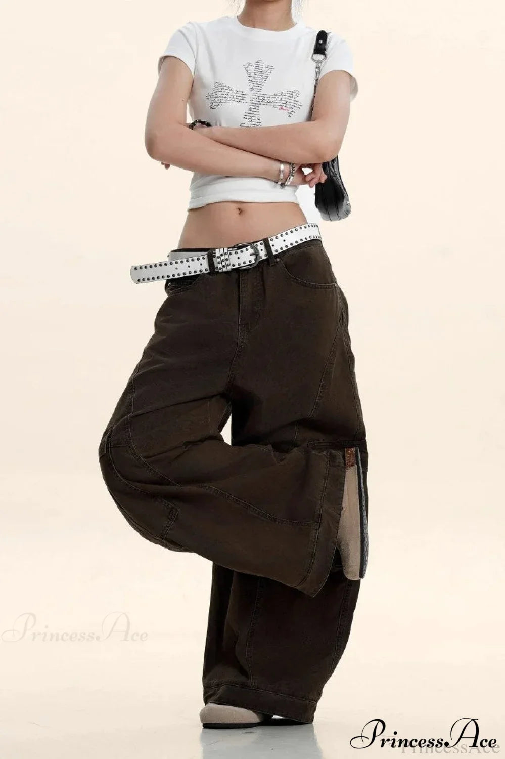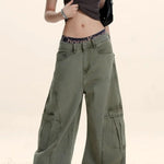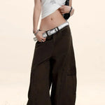 Cargobukser med vide ben og ustrukturerede, buede snit
