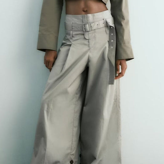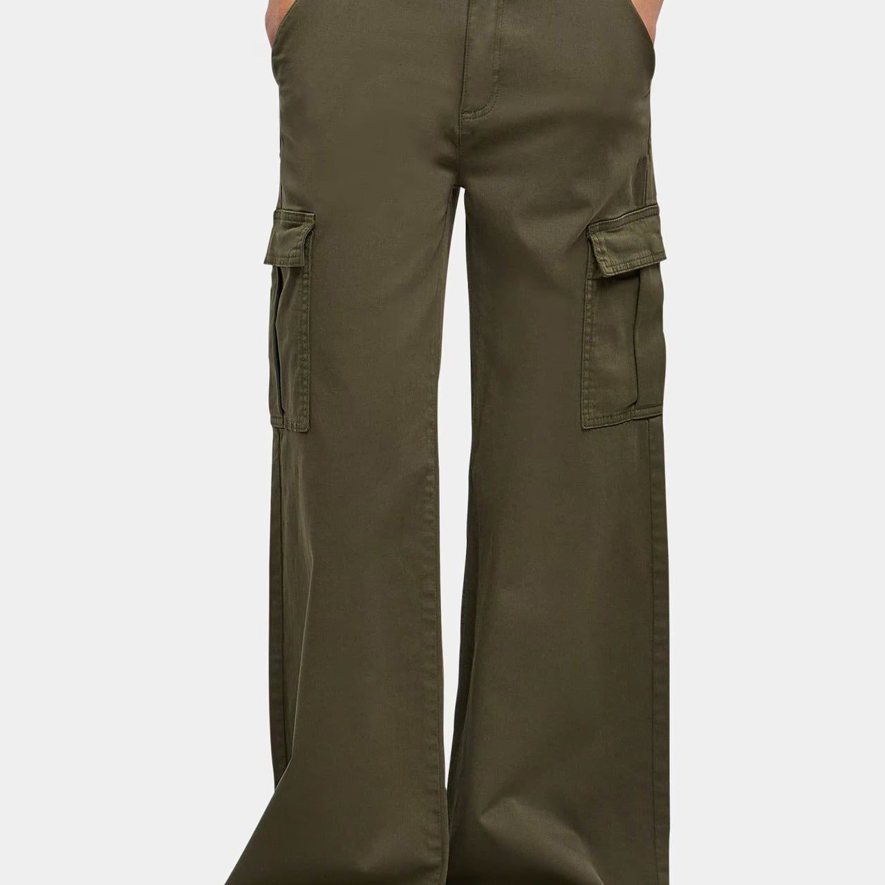 Højtaljede, vide ben i militærgrøn med faldskærm