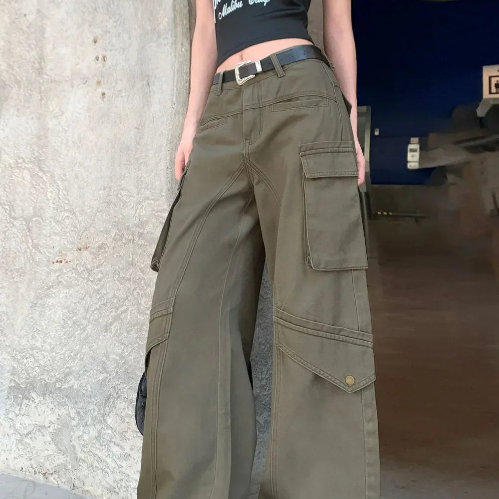Dame cargobukser - Høj talje - Løs pasform - Funktionelle sidelommer