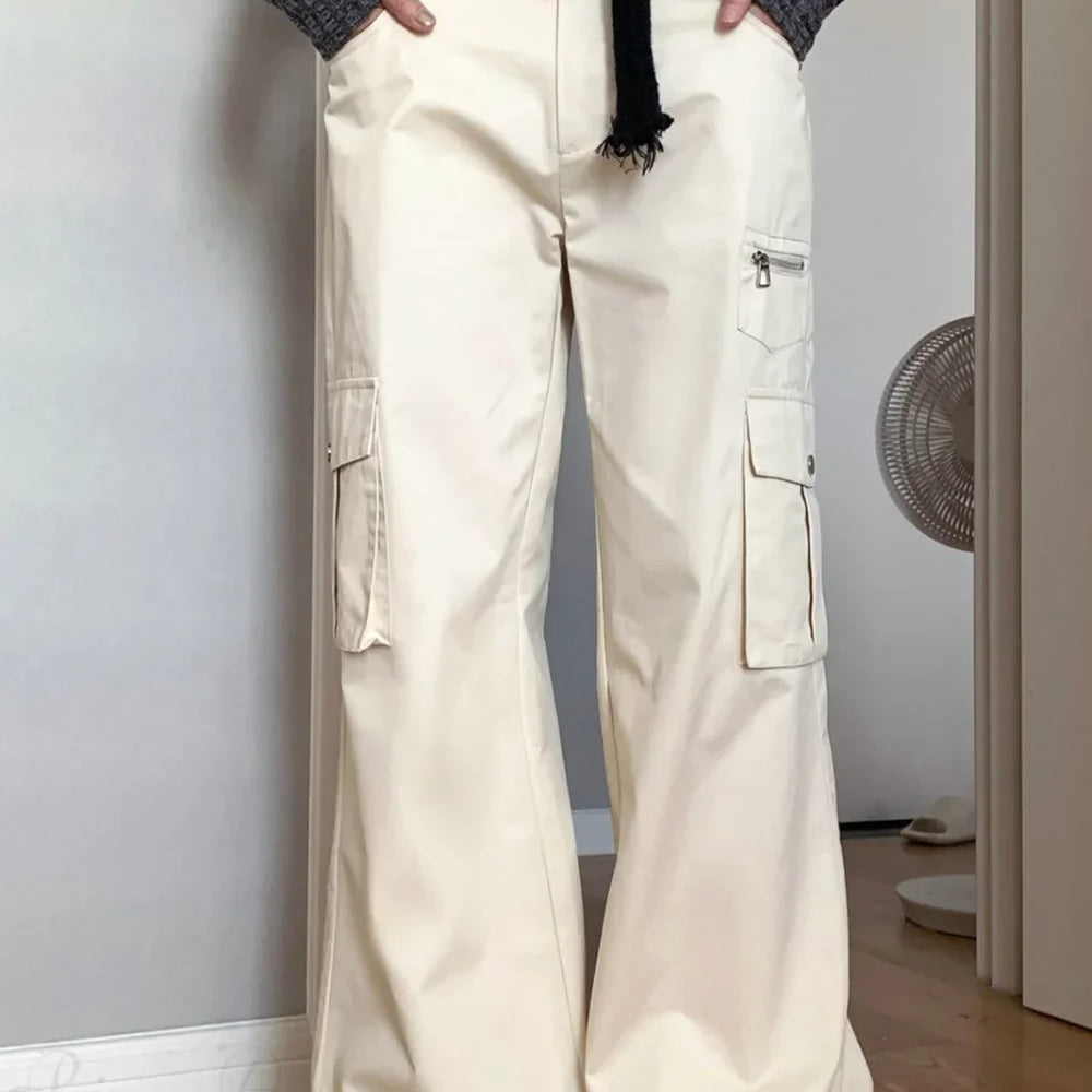 Dame cargobukser – Høj talje – Vide ben – Afslappet pasform – Åndbart stof
