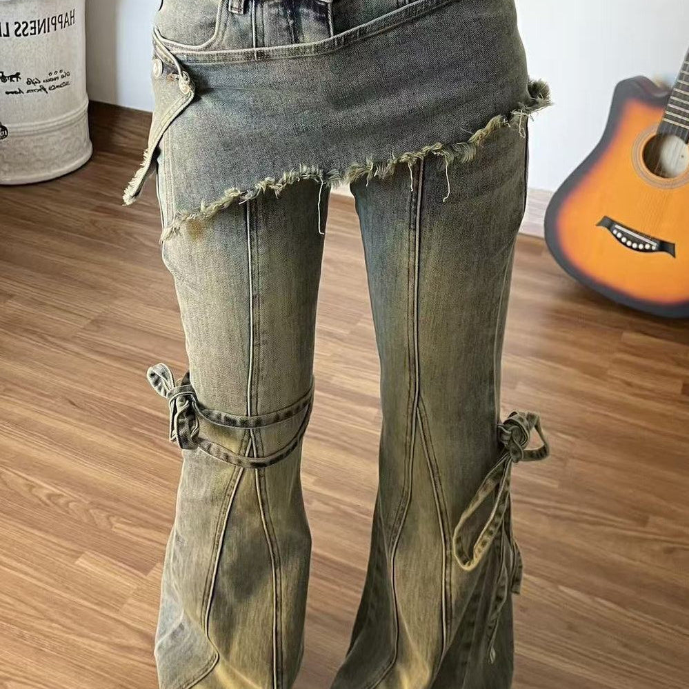 Vintage todelte bootcut jeans med bindebånd i taljen