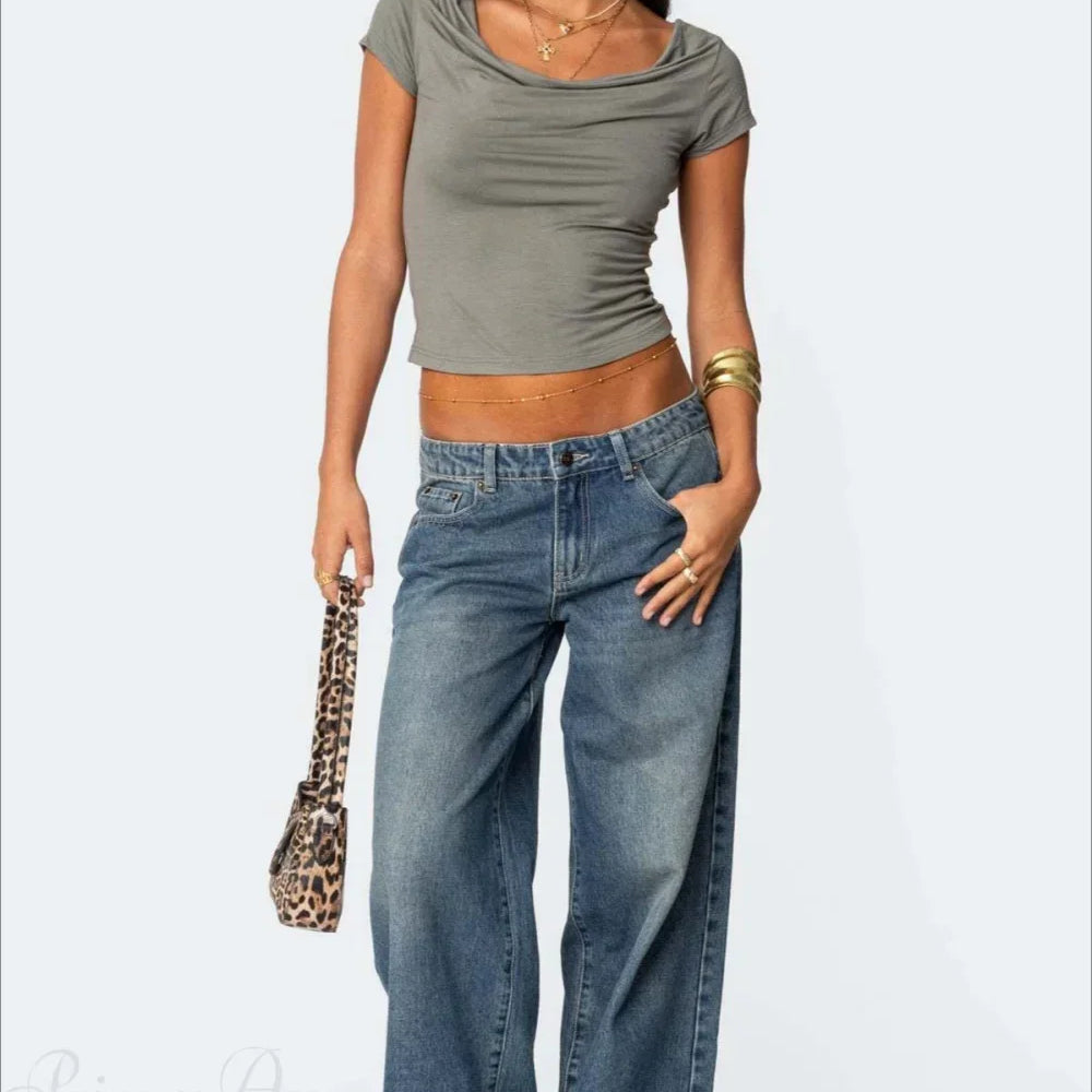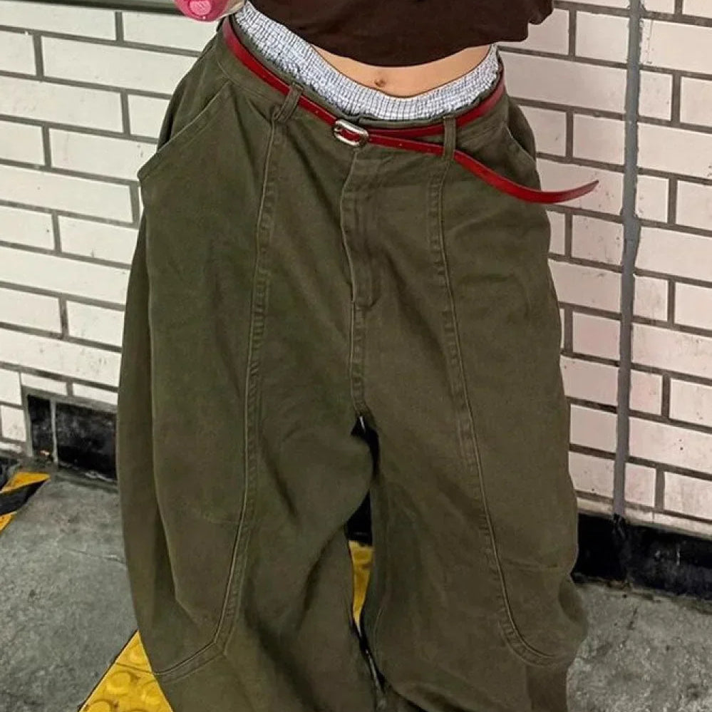 Y2K Vintage Slim Jeans med Flere Lommer og Svæng