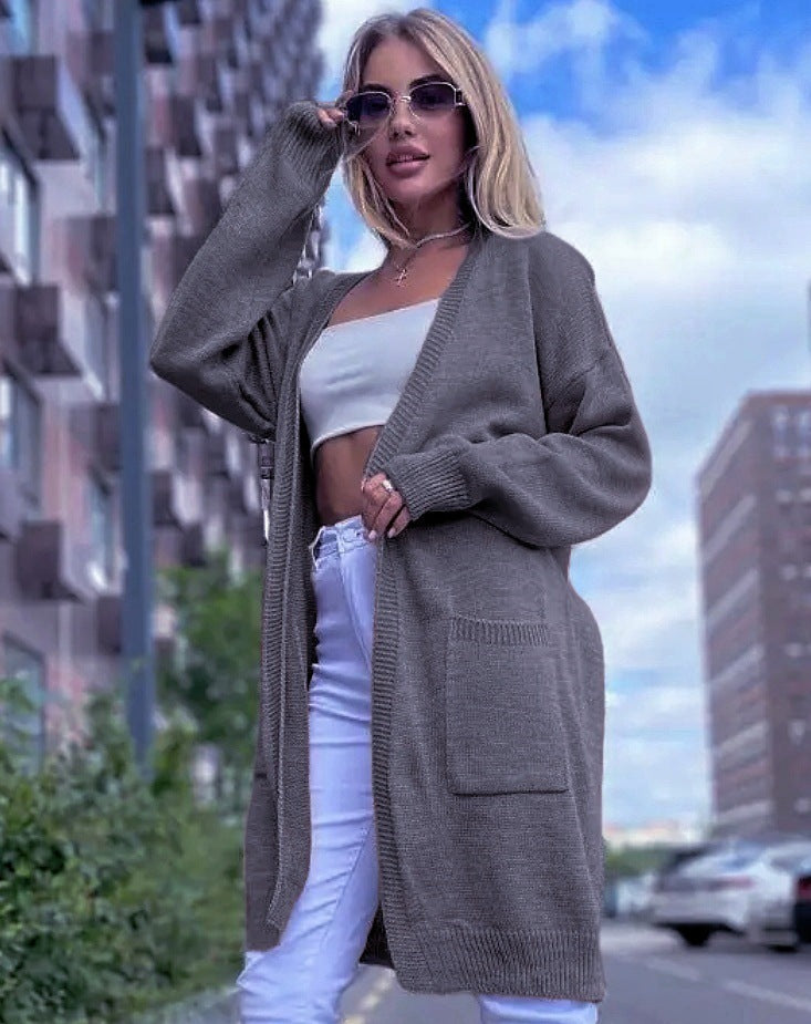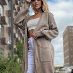 For et elegant og afslappet look, kombiner denne lange cardigan med smalle jeans og ankelstøvler.
