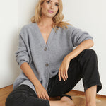 Damecardigan – Oversized pasform – Blød strik – Ribbet tekstur – V-hals med knaplukning