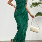 Stropløs damekjole – Bodycon-pasform – Lang – Elegante asymmetriske flæser