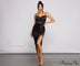 Sæt et statement i vores luksuriøse Nadine midikjole. Den har en ærmeløs kraveudskæring, fine spaghettistropper, en mellemlang silhuet med en rynket sidesøm og en høj sideslids. Kjolen er lavet af stretchsatin, der følger dine kurver. Fuldend dit look med klare hæle og en elegant clutch for et fantastisk aftenoutfit.