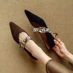 Damesko med Mary Jane-motiv – Elegant ruskind – Mellem hæl – Spids snude – Spænderem
