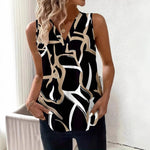 Ærmeløs dametop – Afslappet pasform – V-hals – Abstrakt print – Letvægtsstof