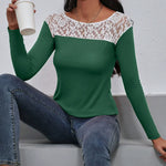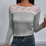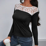 Langærmet dame-T-shirt – Tætsiddende snit – Blomsterblonde – Elegant rund hals
