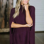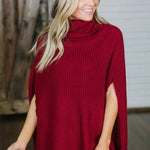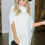 Dameponcho – Uldstrik – Løs pasform – Rullekrave – Vide ærmer
