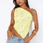 Dametop i blonde – Off-shoulder – Tætsiddende snit – Asymmetrisk kant – Kort