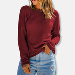 Dametop med lange ærmer – Afslappet pasform – Vaffelstrik – Nedsænkede skuldre