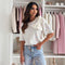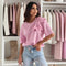 Kortærmet dametop – Lige snit – 3D-sløjfe på skuldrene – Let, åndbart stof