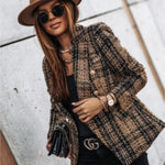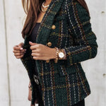 Elegant dobbeltradet ternet blazer med smal pasform og lange ærmer