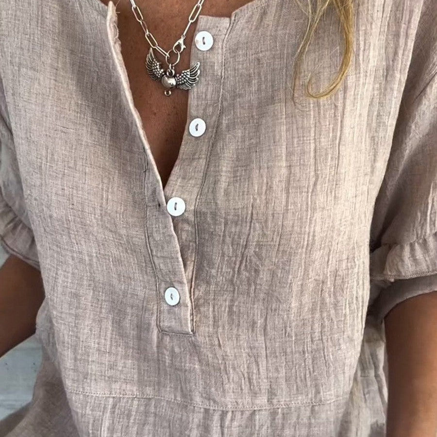 Kortærmet dametop – Løs pasform – Åndbart stof – Elegant flæsedetalje