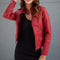 Nøglefunktioner: Dristig farve: Træn ud i en slående rød nuance, der tiltrækker opmærksomhed og tilføjer et levende touch til ethvert outfit. Skræddersyet pasform: Med en elegant silhuet, der fremhæver din figur, følger denne jakke alle de rigtige kurver, samtidig med at den tilbyder komfort og bevægelsesfrihed.