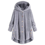 Dame fleecejakke – Afslappet pasform – Hætte – Knapper – Lang kant bagpå