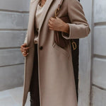 Løft din garderobe med vores Timeless Elegance Coat, den perfekte blanding af sofistikering og stil. Denne frakke er fremstillet af materialer af høj kvalitet og tilbyder en luksuriøs følelse, samtidig med at den sikrer, at du holder dig varm og elegant på køligere dage.