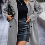 Damefrakke – Afslappet pasform – Uldeffekt – Knælang – Dobbeltradet