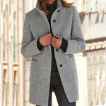Opdag Francis-Laurents uldfrakke til kvinder – tætsiddende snit – høj krave – midt på låret. Denne elegante uldfrakke tilbyder en strømlinet silhuet og optimal varme, perfekt til at tilføje et strejf af raffinement til din vinter- og efterårsstil.
