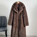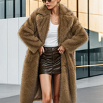 Lang damefrakke i imiteret pels – Oversized pasform – Elegant bred krave